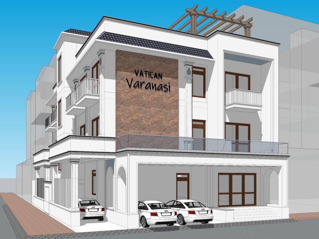 This hotel and hospitality project was undertaken for A. K. Singh and is developed on a built-up area of 13,305 sq. ft. at Gautam Garden. The project comprises 16 rooms along with a restaurant, planned to support hospitality functions with efficient space planning.