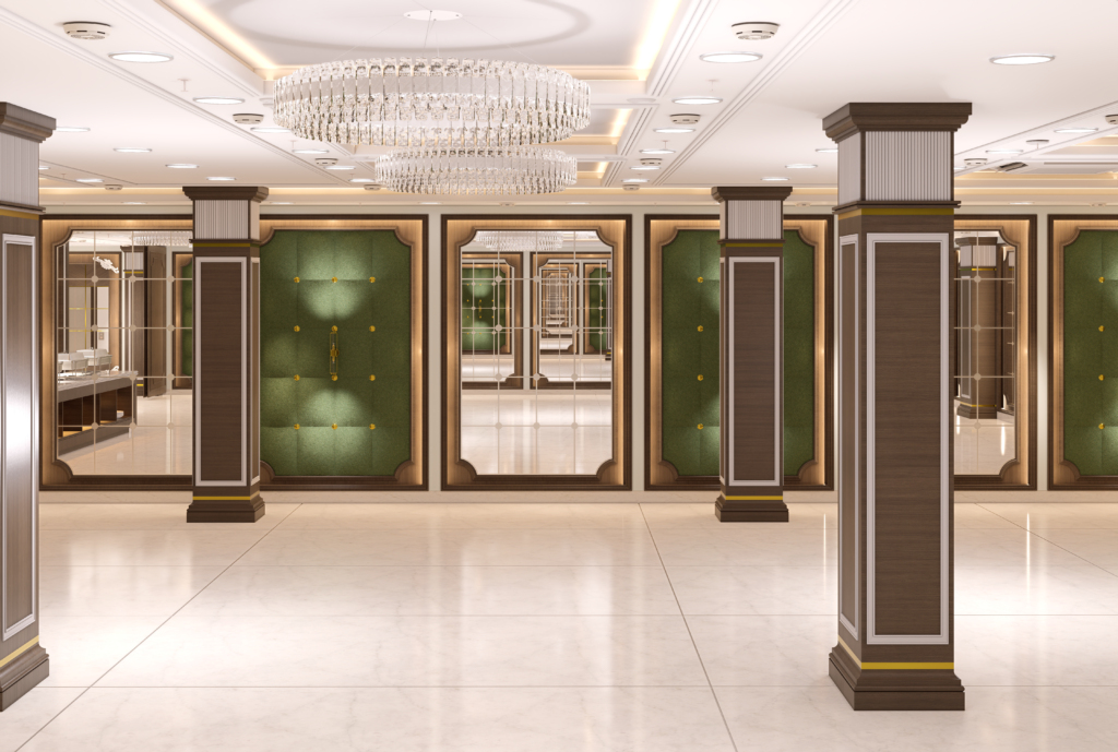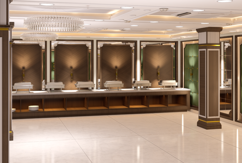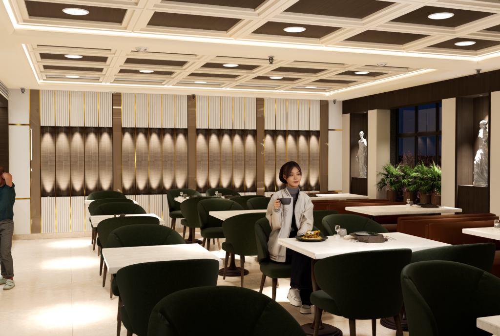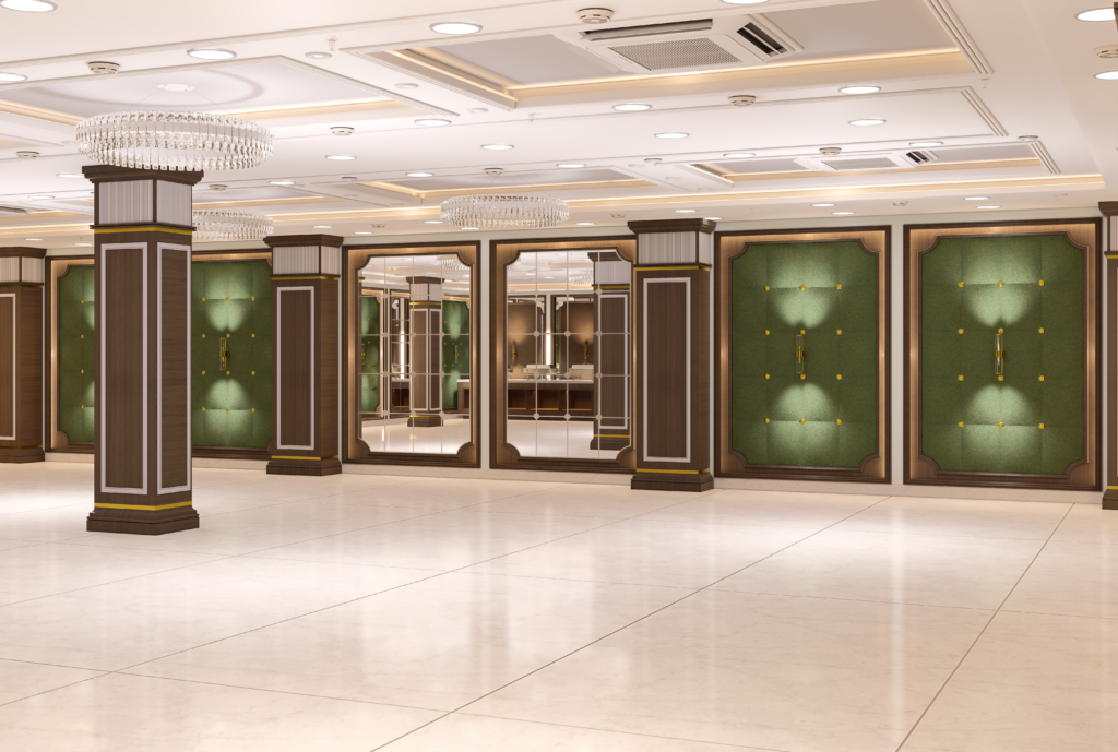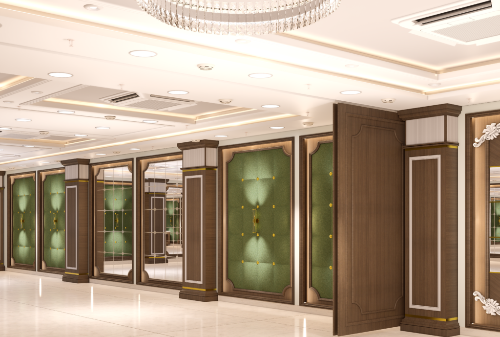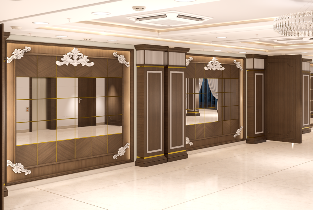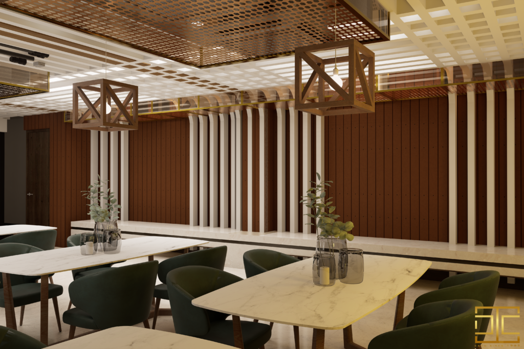 This interior project was undertaken for Le Lotus and is developed over a built-up area of 5,200 sq. ft. at BLW. The project includes a banquet, restaurant, and rooms, planned with a focus on functional layout, spatial efficiency, and cohesive interior design.
